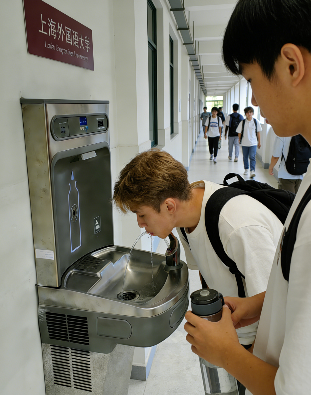 今天小编为你介绍的是一所国际高校的直饮水案例:项目位于上海,一所国内外享有盛誉、专注于外语教育与跨文化研究的重要高等学府。作为该领域的学术重镇与人才培养高地,其校园环境兼具深厚人文底蕴与现代国际化特色,师生对学习生活空间的品质、效率与人文关怀有着高期待。如何在有限的空间内,为其提供一套既能满足高频使用、保障饮水安全,又能无声融入学术氛围、提升整体环境品质的饮水方案,是本次定制服务的核心挑战。