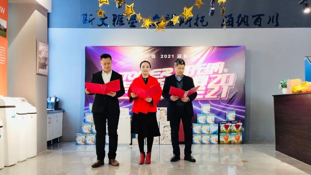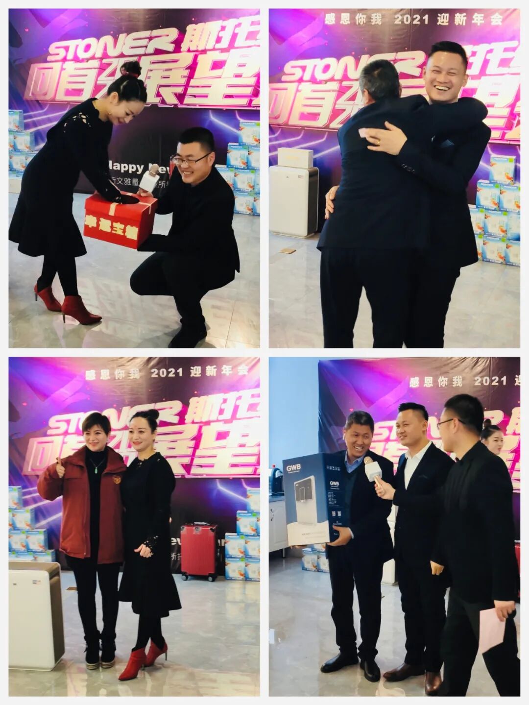 年会开场节目是由公司管理层代表带来的呼应年会主题的《2020感恩你我》三人组原创诗歌朗诵。随着饱含深情、抑扬顿挫的诵读声,我们也心潮澎湃,我们听到了:2020年,我们感恩国家推出了一系列优惠政策,加大了对中小微企业的政策护持,STONER斯托纳积极争取相关政策补助;合法经营认真履行纳税义务,连年被评为上海市浦东新区增值税A类企业纳税人;我们感恩公司以开放的管理模式,赋予了我们每个年轻的伙伴轻松的工作环境;我们广开言路,张扬个性,务实创新,我们奉行大雁精神,勇当头雁;我们感恩团队,STONER斯托纳是一个富有朝气、积极进取的年轻团队,一路感恩你我相伴前行,年轻就是财富、就有梦想、就有未来;我们感恩合作伙伴,我们心系客户,众望所托,不负品牌方信任,大力发展国内市场,维稳东南亚市场。目前,我们已建立了500家销售网点遍布全国各地,为千万家庭、商业客户提供高品质的净水产品和服务。