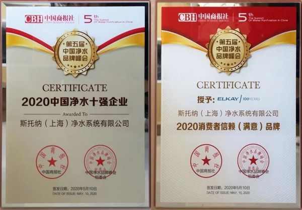 此次活动中,中国商报社公布了“消费者信赖(满意)品牌”、“中国净水10强企业”、“中国净水10强外资品牌等”榜单,引领净水新消费指南。斯托纳(上海)净水系统有限公司凭借其近年来在国内净水市场品牌运营及渠道营销、工程项目的商业价值影响力,经行业内专家、资深人士评选后,中国商报社授予了2020年净水十强企业的荣誉称号。与此同时,斯托纳荣获了2020消费者信赖(满意)品牌。